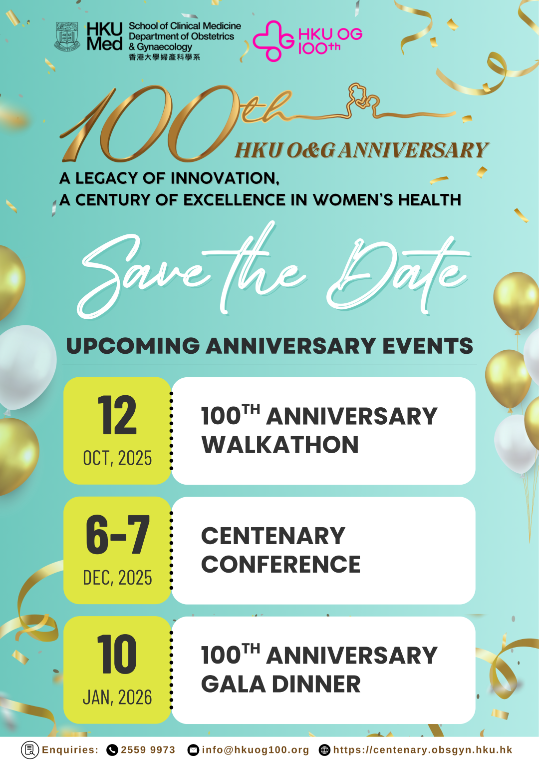We look forward to welcoming you at Tamar Park on 12 October 2025, as we celebrate HKU O&G’s centenary and walk for a healthier future for women in Hong Kong!